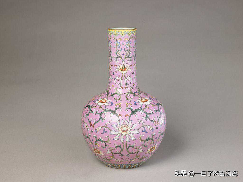 清乾隆珐琅彩勾莲纹象耳瓶