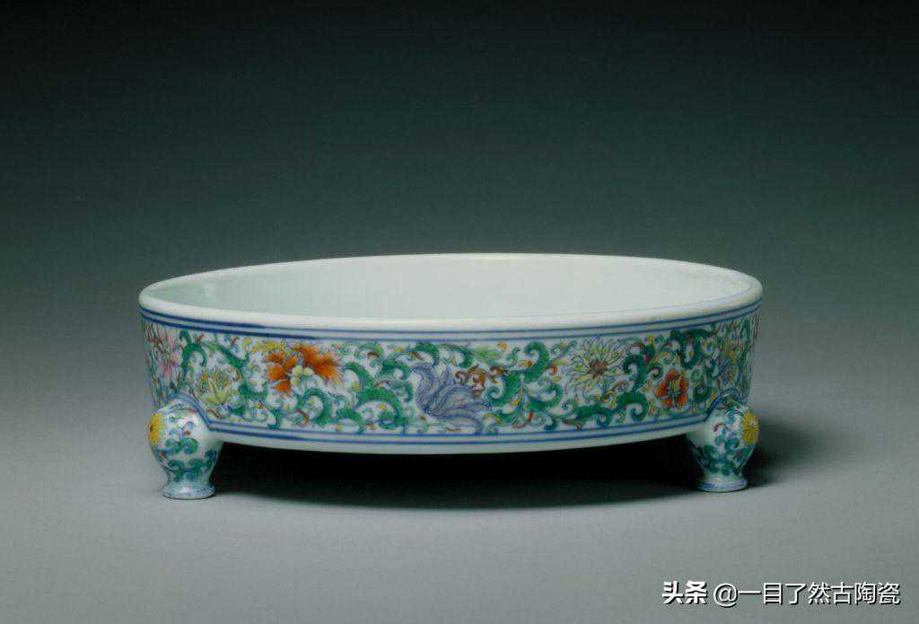 清雍正斗彩缠枝花纹三足洗