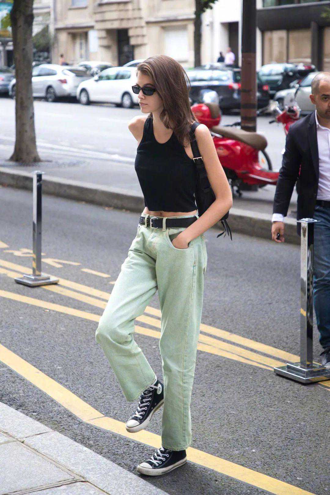 一副墨镜可以说是时髦人的必备了,最简单的牛仔裤+短款crop的基础款穿搭,只要加上一副墨镜,酷劲儿瞬间就来了,看看超模Kaia的示范吧!