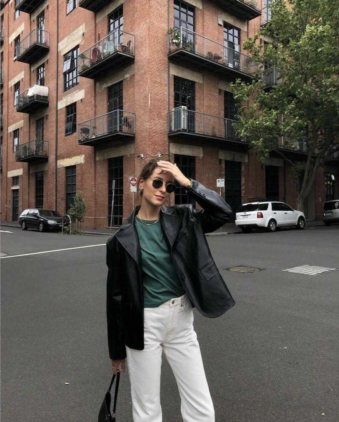 一身基础款简洁干净,想要穿出时髦度,就得在配饰上加一些“小心思”,来丰富造型。