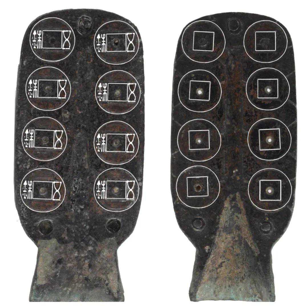 △东汉五铢钱铜范,左图为母范,右图为公范(图片经过处理)。