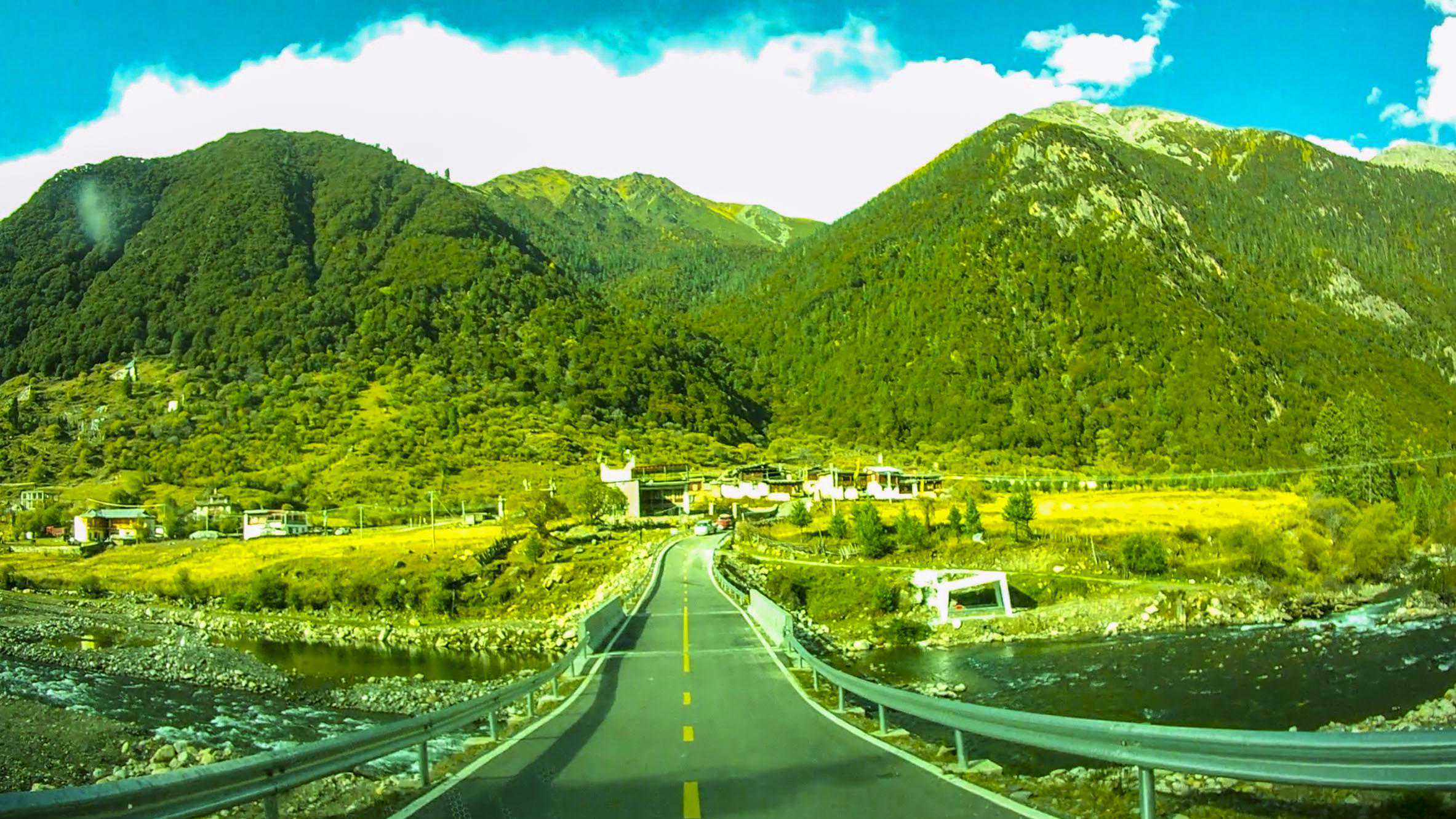 沿途的藏式建筑风格也是别具一格。