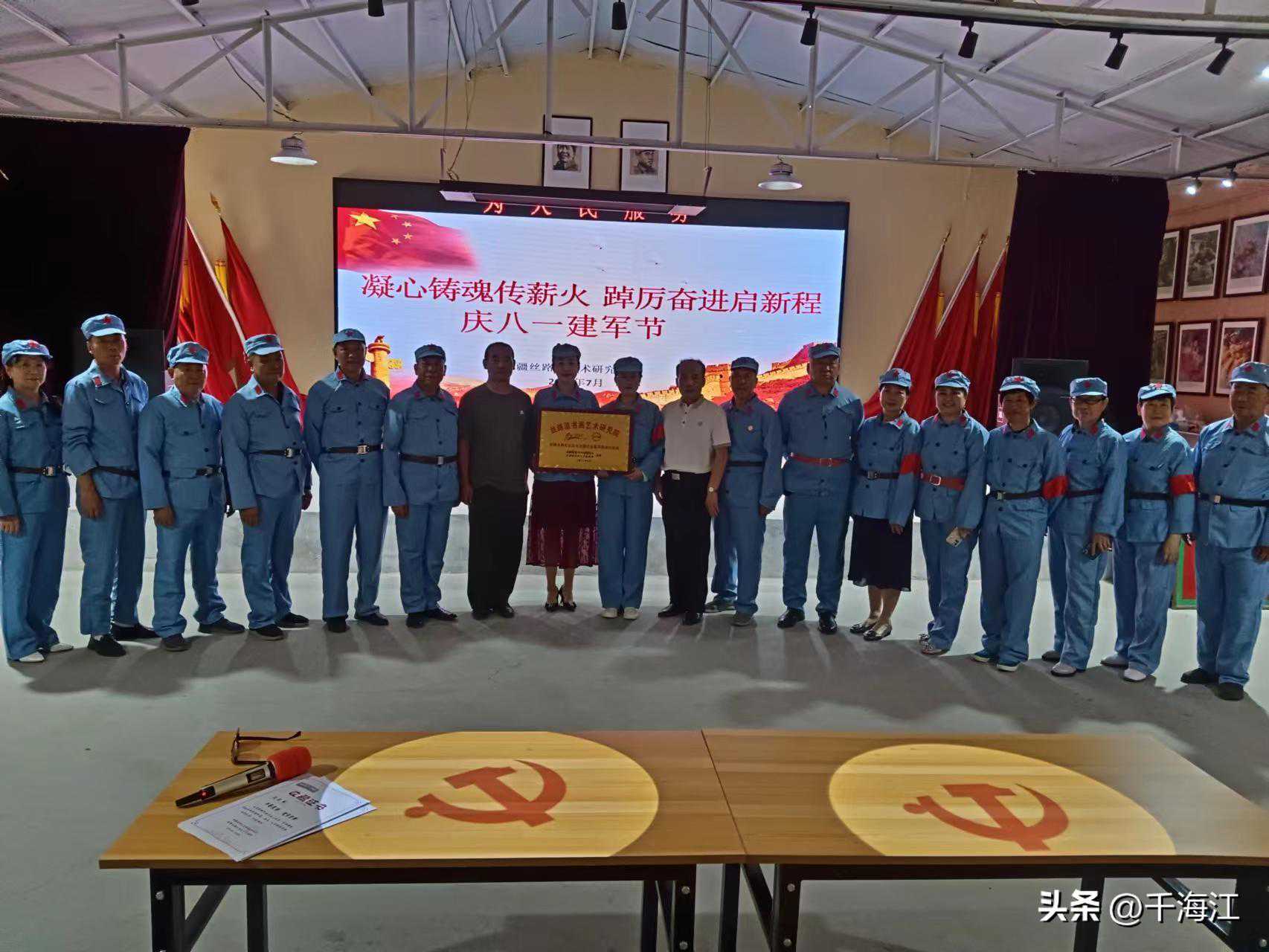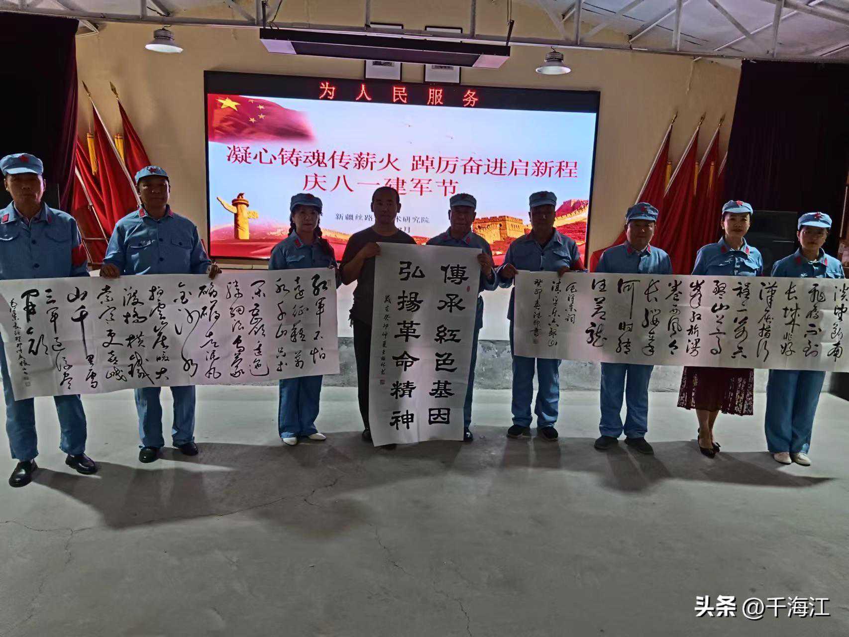 为庆祝“八一”建军节,继承发扬“双拥”优良传统,弘扬以爱国主义为核心的国防教育,7月25日,在院长杨涛的带领下,丝路源书画艺术研究院的20位书画家前往昌吉市新疆永鹏红色记忆收藏馆,共同举办庆祝“八一”建军节书画联欢暨永鹏书画基地挂牌仪式。