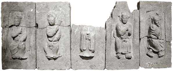 杂剧人物雕砖,陶质,建筑构件,北宋文物,一组5块,均长37厘米,宽17厘米,厚4.3厘米,1991年4月河南省焦作市温县西关三街宋墓出土。