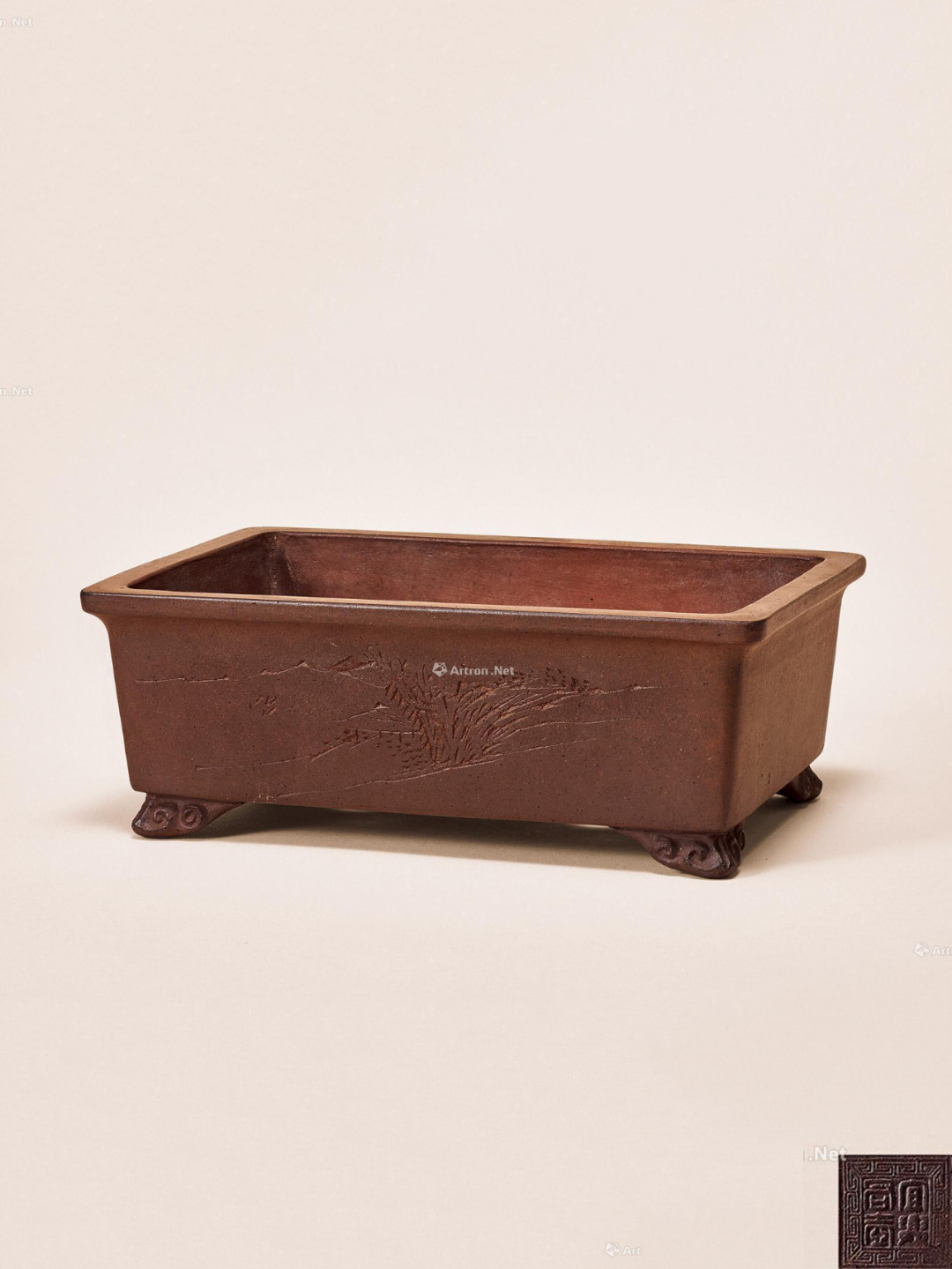 0019谈泉明近代如意足四方花盆