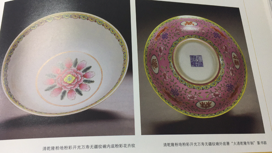 清乾隆粉地粉彩开光万寿无疆纹碗