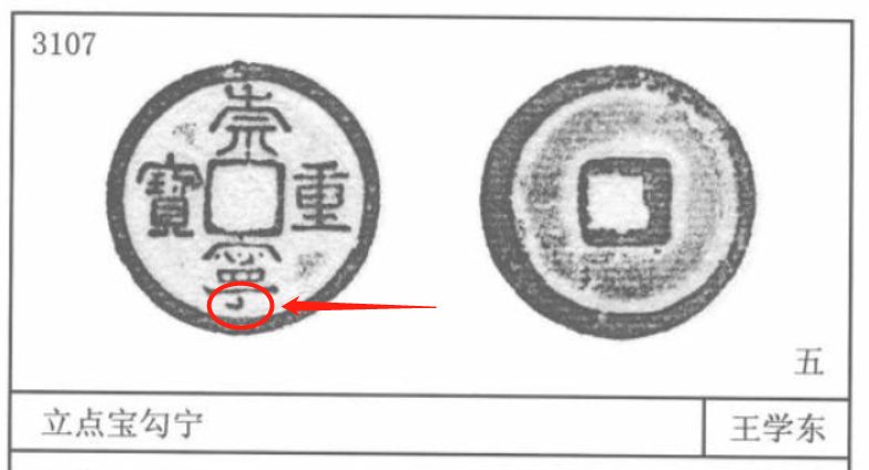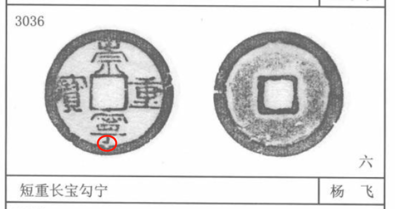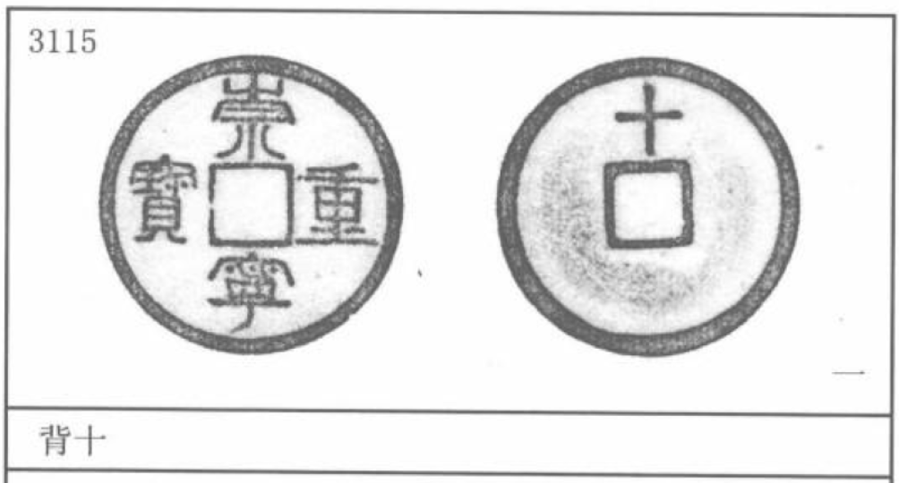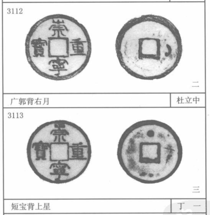 背上带东西的。大家都知道崇宁通宝全是光背,截止目前并没有发现有批量出现背纹,而崇宁重宝则有不少带背的好版。
