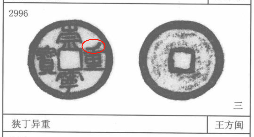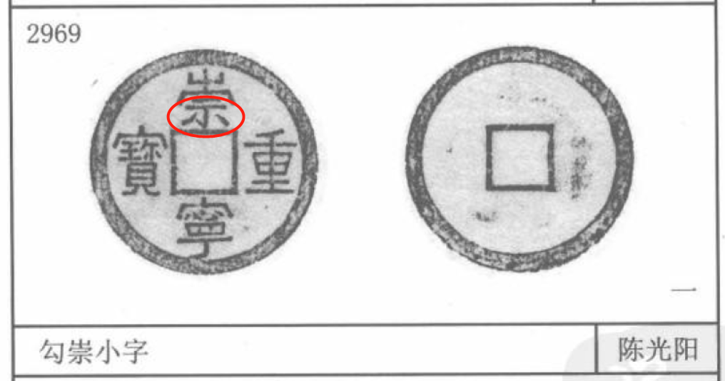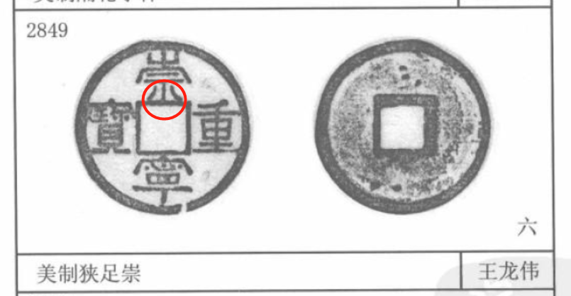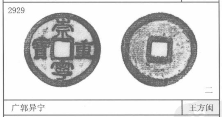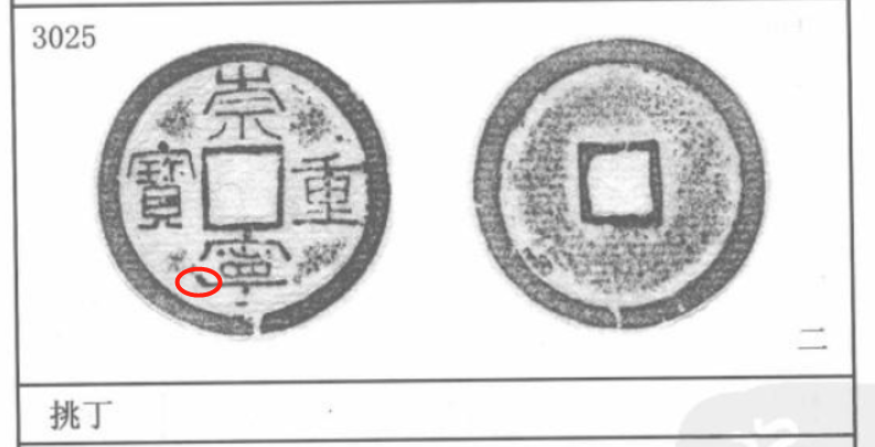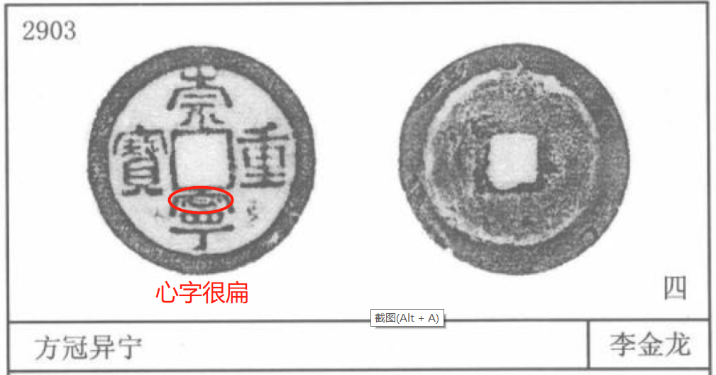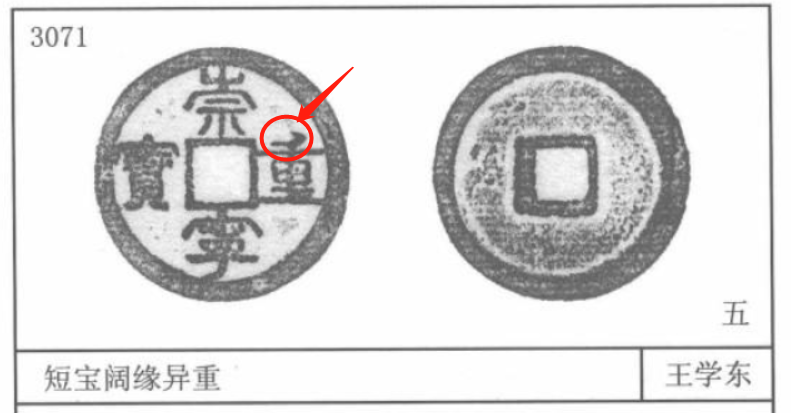 3085号——狭宝狭重。崇宁二字正常而重宝二字狭窄,明显与穿和外缘都不连结。另外还有一个系列的版本叫狭重,版本都很高。