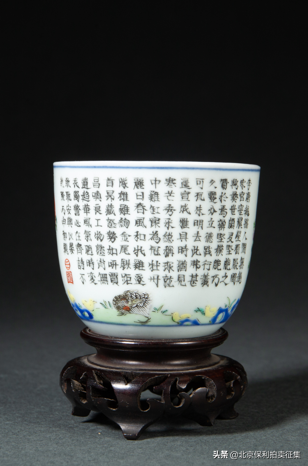 清乾隆木纹釉内松石绿描金粉彩八仙方斗杯