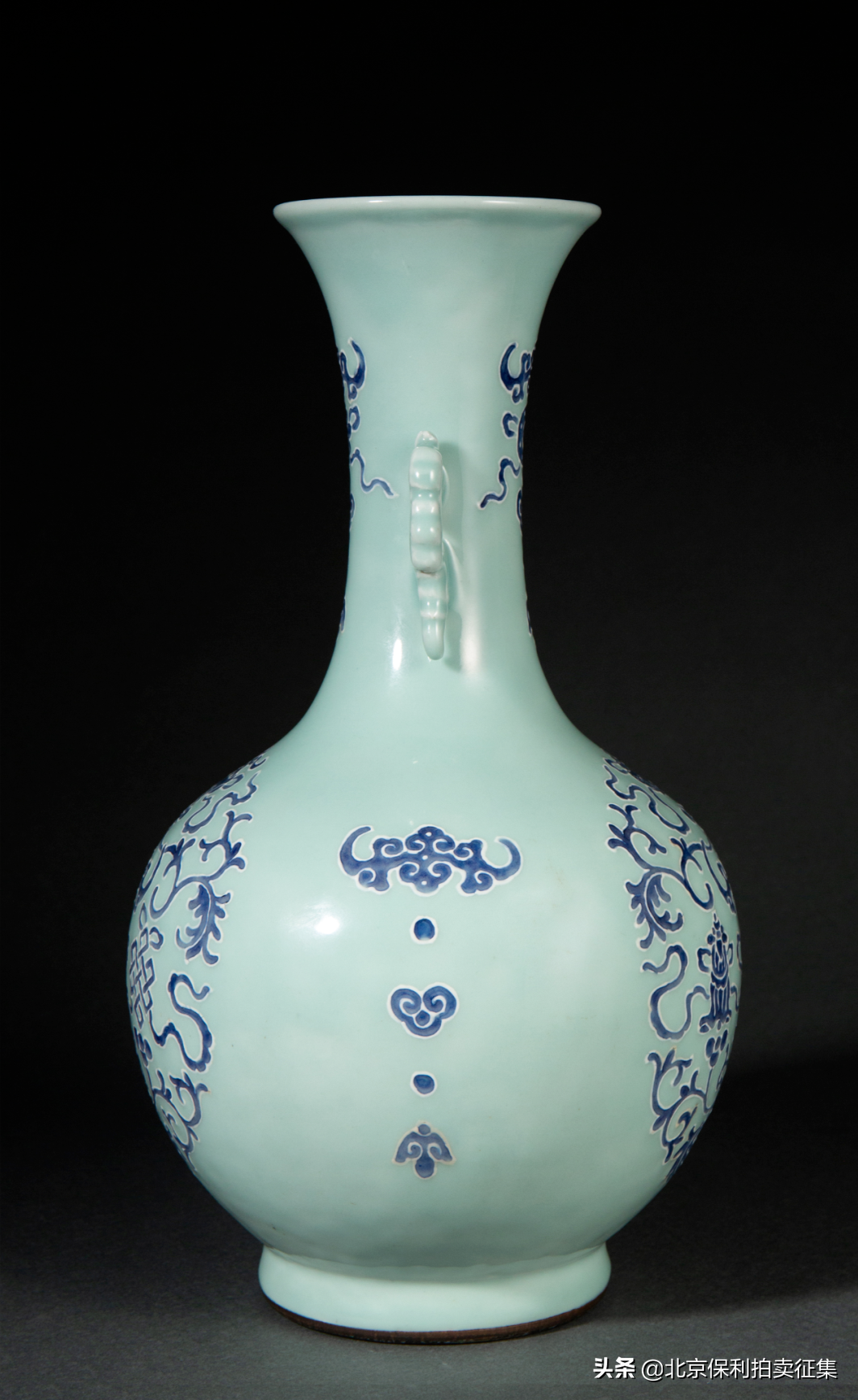 清乾隆青釉地青花沥粉八吉祥螭耳瓶