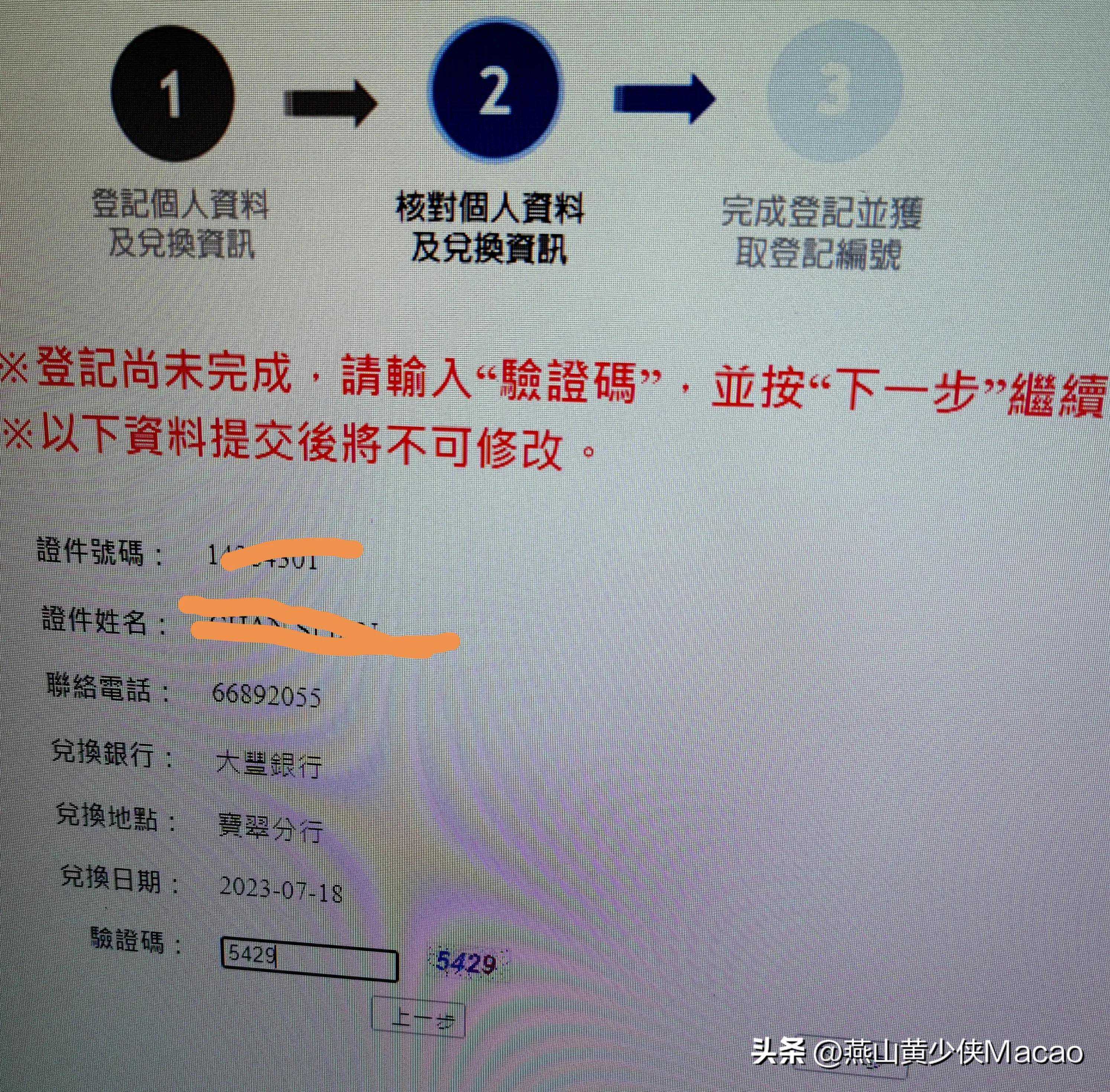 首先填身份证号码、证件姓名、联络电话、兑换银行、兑换地点和兑换日期,照指引填写资料。