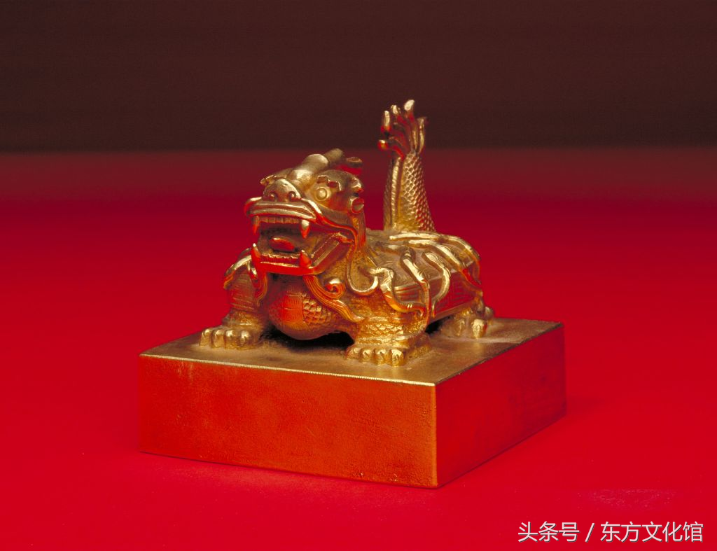 珍妃之印”,清光绪,金质,龟纽方形玺,满汉文篆书。面11cm见方,通高11.5cm,纽高8cm。