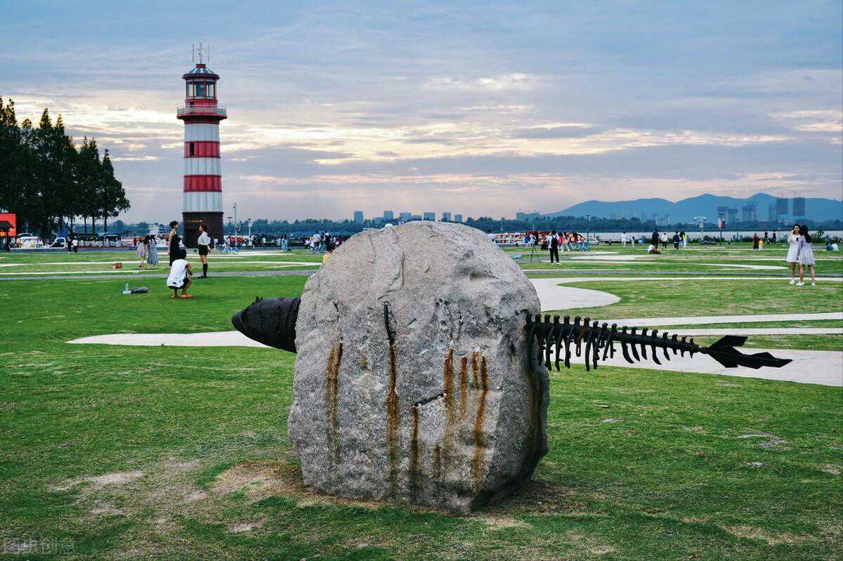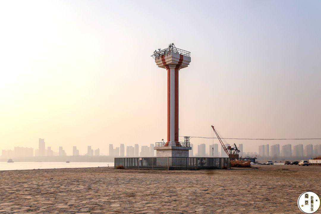 14.鱼嘴湿地公园位于南京市建邺区扬子江大道888号,江边观景宝藏地,这是南京最美日落地,有着“南京小垦丁”之称,蔚蓝的江水翻涌起伏,与闪烁的灯塔应和,太美了!