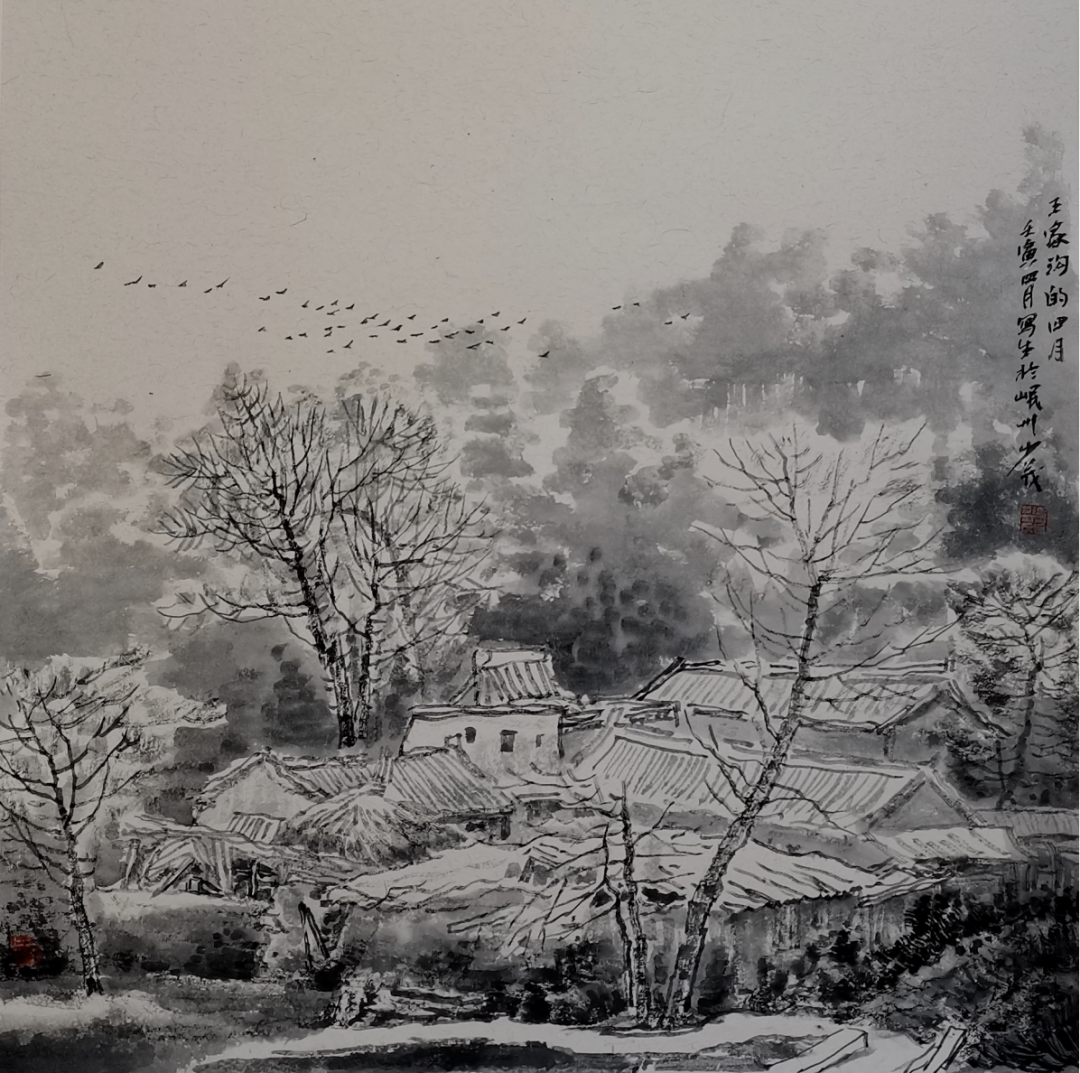 一般而言,观念的不同,导致笔法与山水结体之间产生变异。但包少茂的山水实践,并非观念先行,他一开始就摆脱了前辈画家背负的以历史为主体的人文精神,从笔墨语言的尝试和探索中,提炼出符合自己生命底色的山水信仰:包少茂从小生活在著名的当归之乡——岷县的大山深处,在那里,岷山尽管驰名天下,高不可攀,却长期笼罩在贫寒之中,一种巨大的力量在这种反差中产生。当他走出大山之后,这种感受和经验就更加突出了,“岷山”成就了他最初的绘画,又矗立在记忆和视觉的尽头,成为永远的指引——至大至刚,崇高而又圣洁。由此出发,构成了包少茂西部山水画的精神谱系。