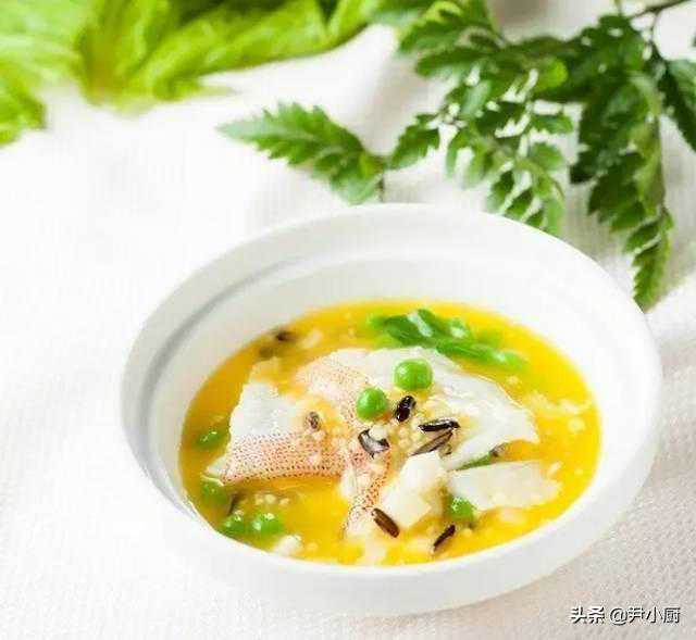 制法:将红斑鱼治净,去骨,将鱼肉片成蝴蝶片,加盐、生粉码味,入高汤汆熟,备用;将油菜心、枸杞入高汤焯熟,备用;锅入浓汤煮开,放入美国野米、沁州黄小米、鹰嘴豆、青豆、山药丁,加盐调味,勾芡,倒入炖盅,将鱼片放入炖盅,用菜心、枸杞点缀即可。