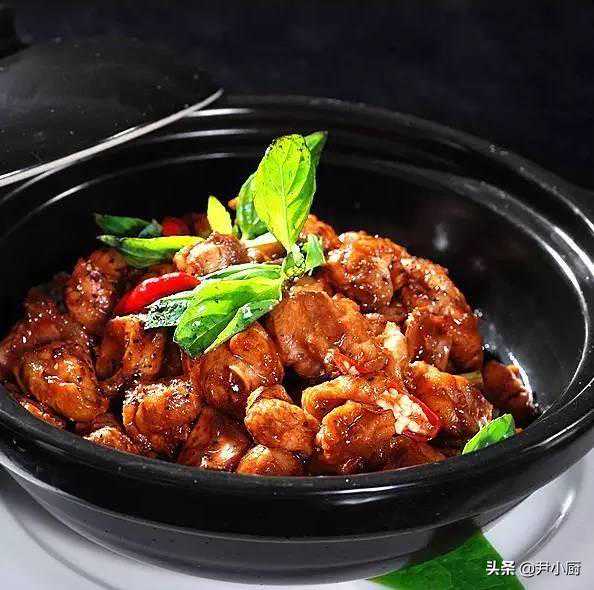 把砂锅放火上烧热,先下香油、沙姜末、洋葱末、姜末、蒜丁、小米辣末、豆角丁等炒香,再把腌好的鸡块放进去翻炒匀,等盖上盖子改小火焗8分钟后,揭开锅盖撒入九层塔末拌匀,焗2分钟过后,再次掀开盖子并撒入少量的九层塔末,即可上桌。