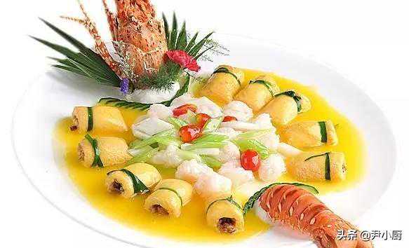 把龙虾肉切成球状,入盆加葱姜汁、料酒、盐、鸡蛋清、生粉等腌渍入味,再投入五成热的油锅里滑油,捞出来待用。