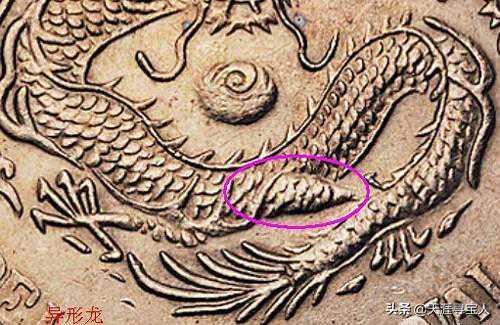 异形龙的版别主要用龙尾部分来划分,分为三个版别:异形龙尾上花,异形龙尾上十字,普通异形龙。其中异形龙尾上花版较为难得,其名誉度在北洋23中仅次于狗头龙。