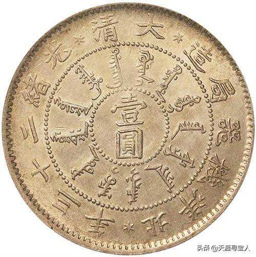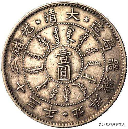 北洋造34年光绪元宝(版别较多:有卷三旗四版、异体字版、长尾龙版、短尾龙版、开云版、小字版和长尾短云版等)