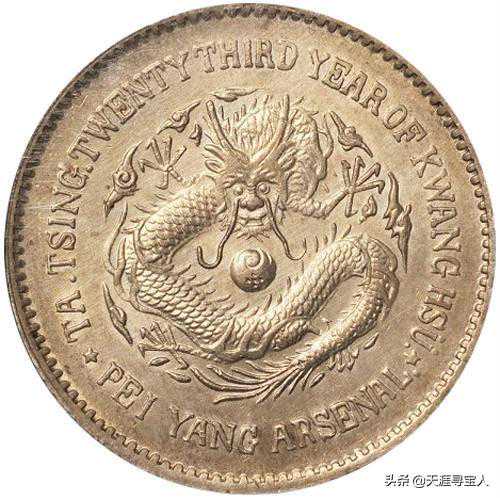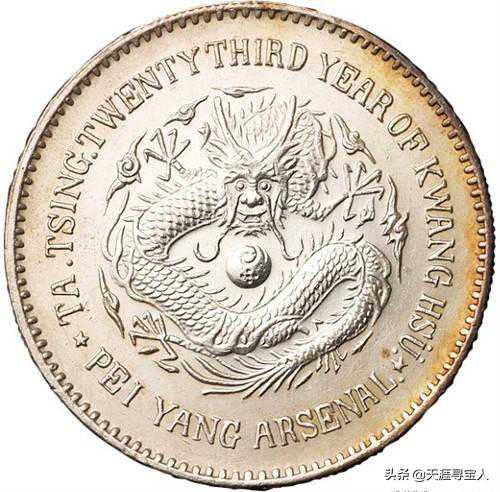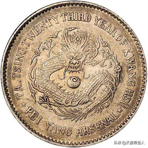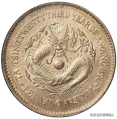作为北洋系列流通银元的开山之作,北洋23始终保持着它的神秘和庄严。光绪二十三年,1897年,北洋银元局铸造了北洋23年银币,铸币总值117.655万元,这是北洋早期流通银元的最重要年份,其收藏价值和研究价值都较高。