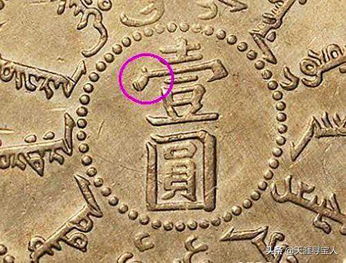 先说一个重要的文字修模,因为圆眼龙是用这处修模来分版的:普通圆眼龙的字面与北洋24的风格是一致的,壹字宝盖部分点和横是相连的,而三角眼和异形龙则是分开的。
