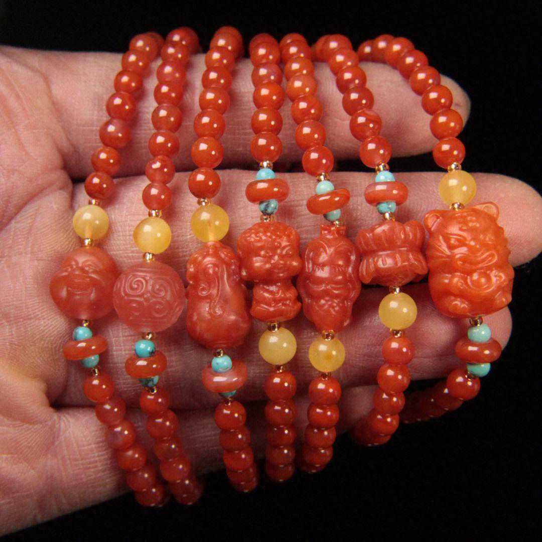 4.工艺精湛的雕刻工艺能够提升南红玛瑙的价值。对于手串而言,每颗珠子的形状、大小应基本一致,雕刻线条应流畅、生动。
