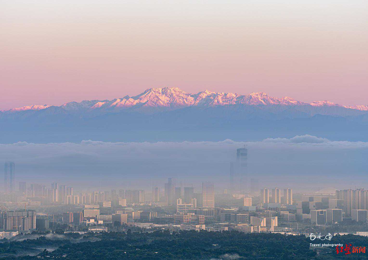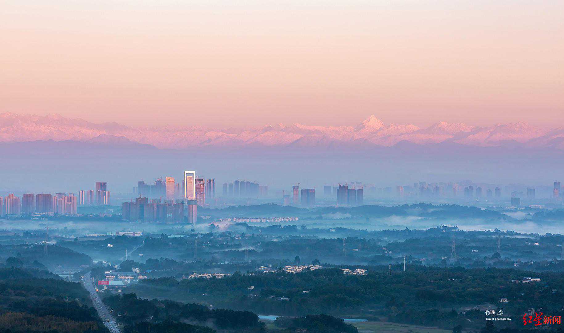 看雪山看猛禽,可以拍到天府新区与贡嘎雪山同框。
