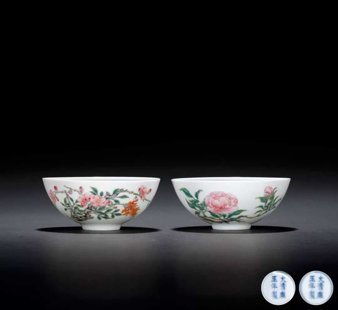 清雍正·粉彩花卉纹小杯(一对)