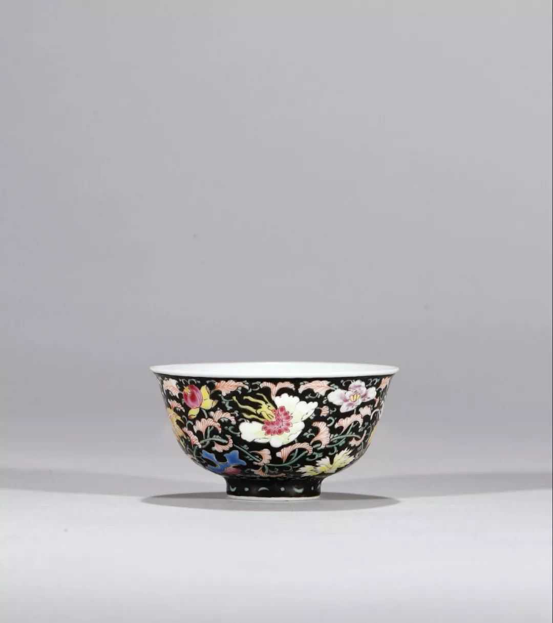 清雍正·墨地粉彩缠枝花卉纹盌