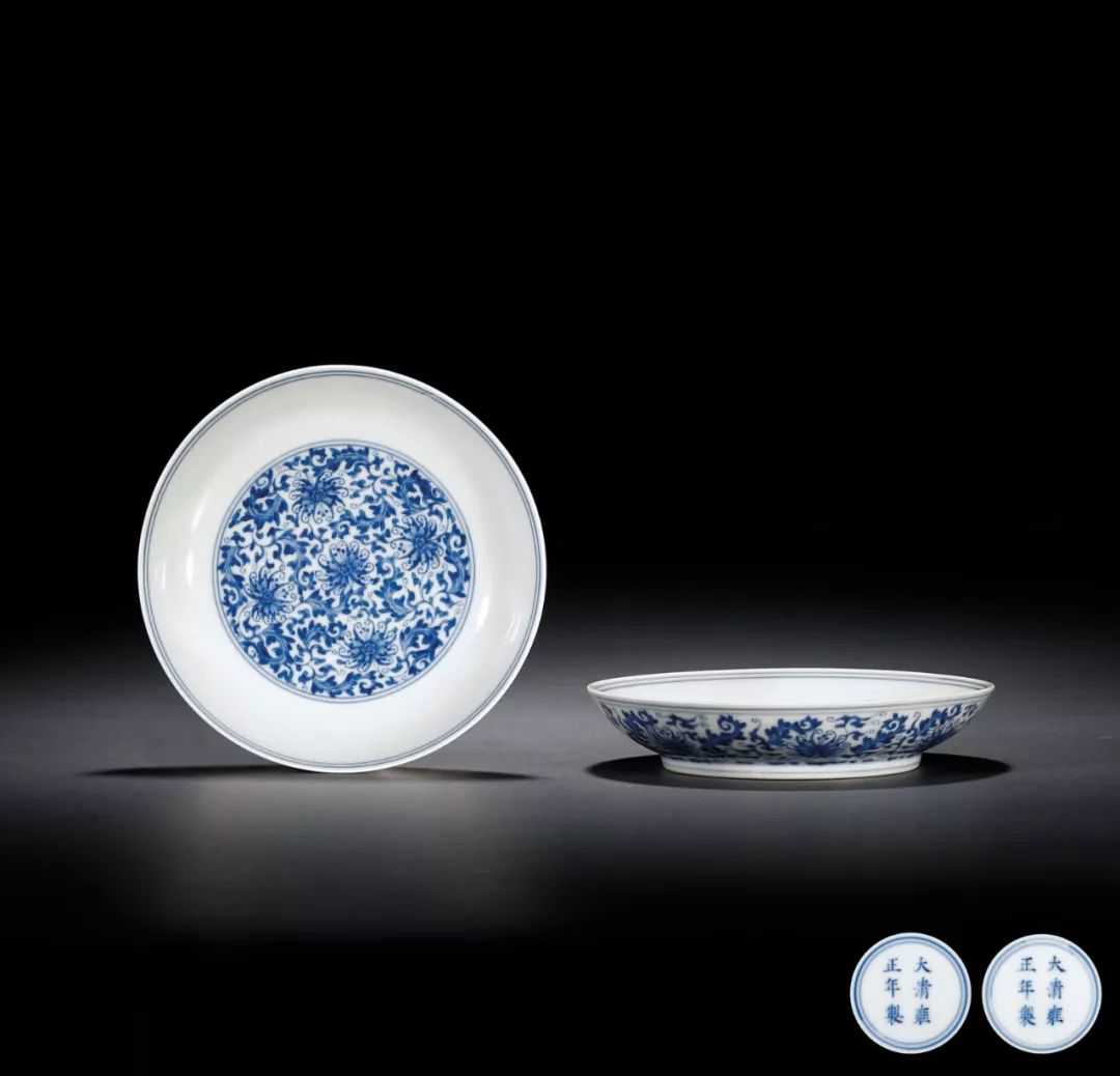 清雍正·青花缠枝菊花纹盘(一对)