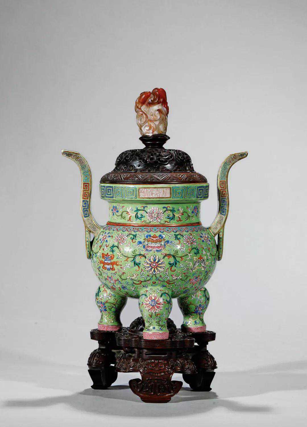 清嘉庆·绿地粉彩八吉祥炉
