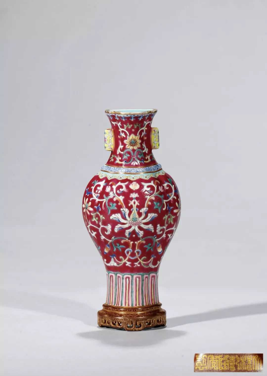 清乾隆·胭脂红地缠枝莲纹粉彩壁瓶