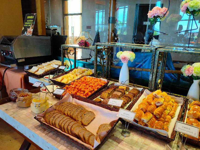 餐厅满满的海洋元素,深蓝色的装修,仿佛嗅到了大海的味道,自助餐很丰富,中西搭配,出品精致,估计吃完这顿,可以坚持到晚上。