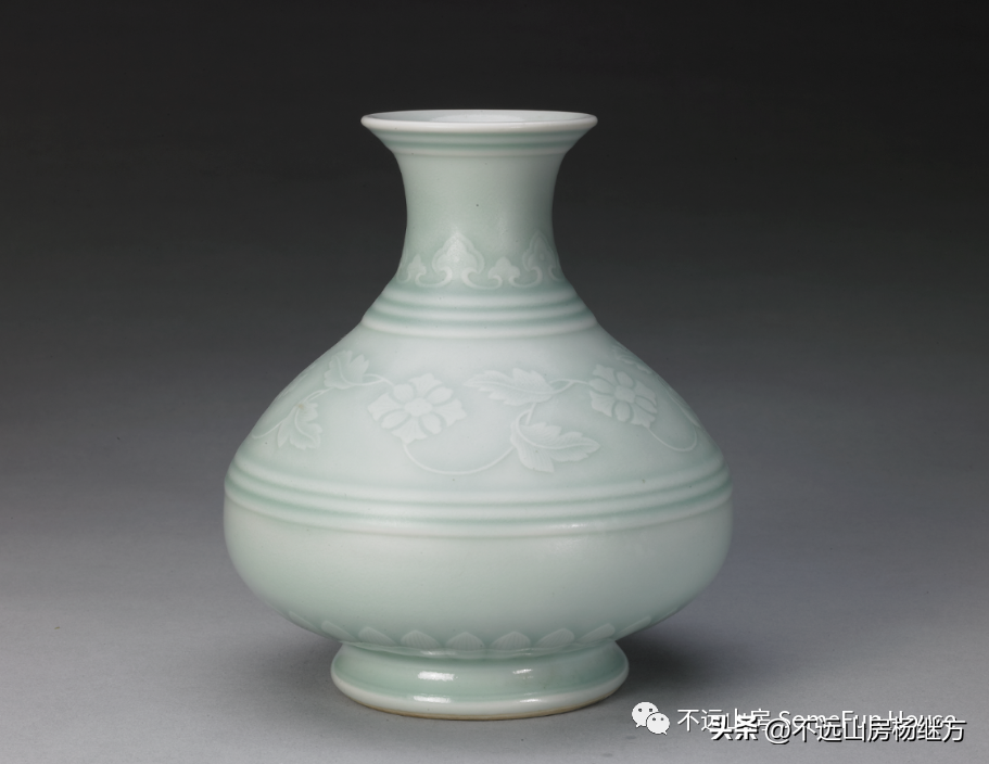 故宫博物院藏清雍正冬青釉暗花缠枝莲纹撇口瓶