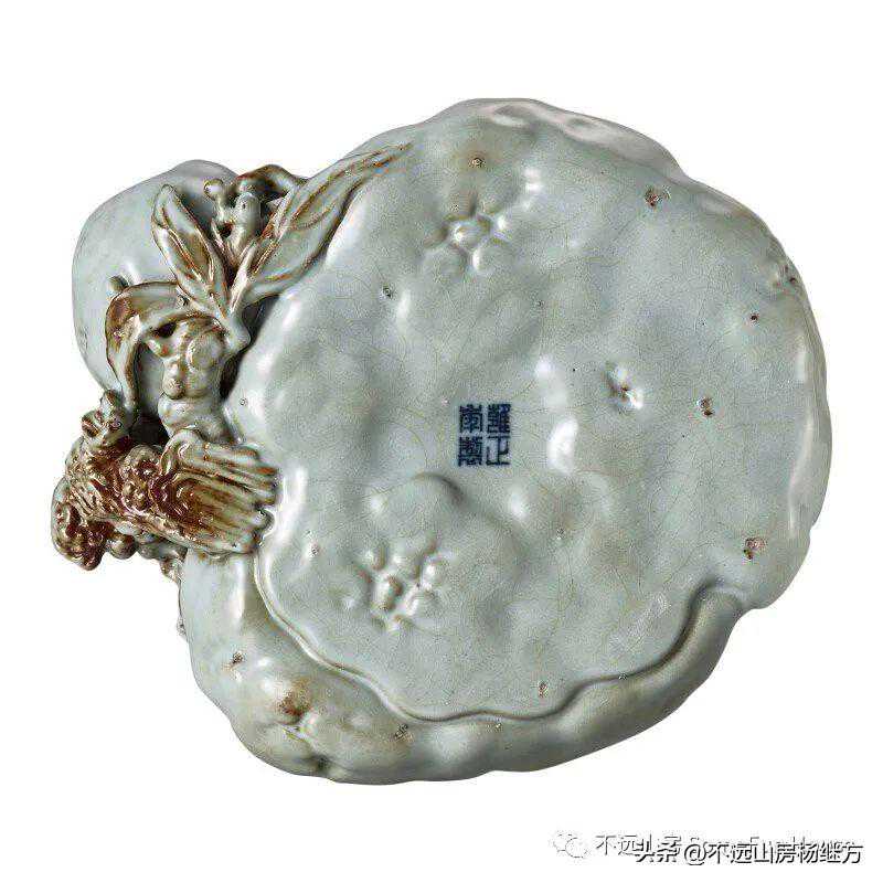纽约苏富比拍賣2021年10月12日藝德堂藏清代康雍乾御瓷萃珍雍正仿官釉桃式洗《雍正年製》款成交价2,520,000港元