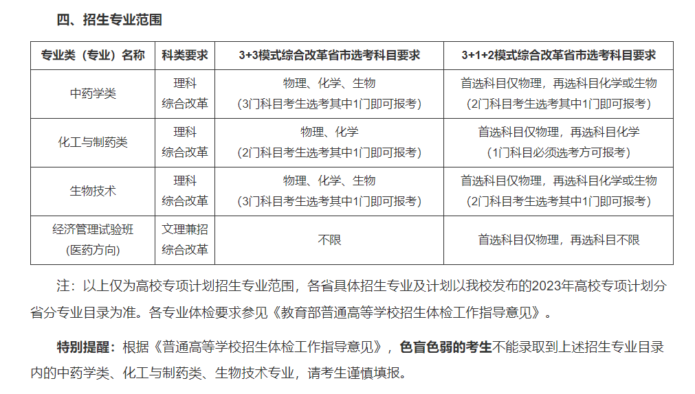 4月6日,中国药科大学发布2023年高校专项计划招生简章明确,招生计划数不少于该校2023年度本科招生计划总数的2%。