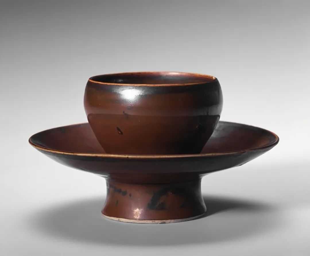 北宋定窑柿釉茶盏托美国哈佛艺术博物馆藏