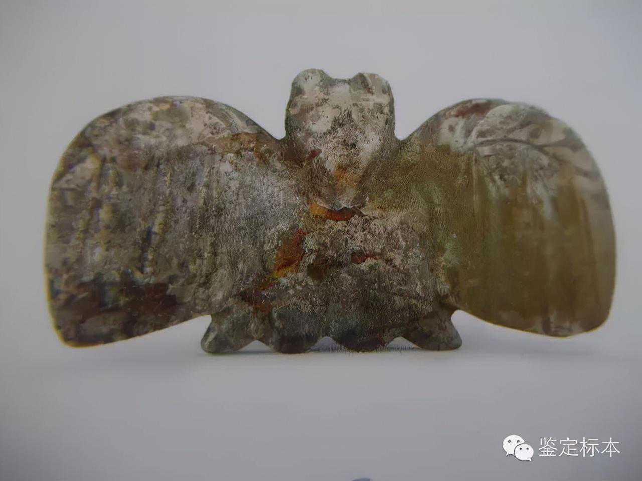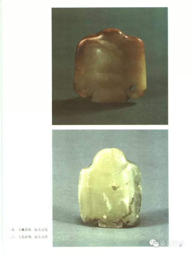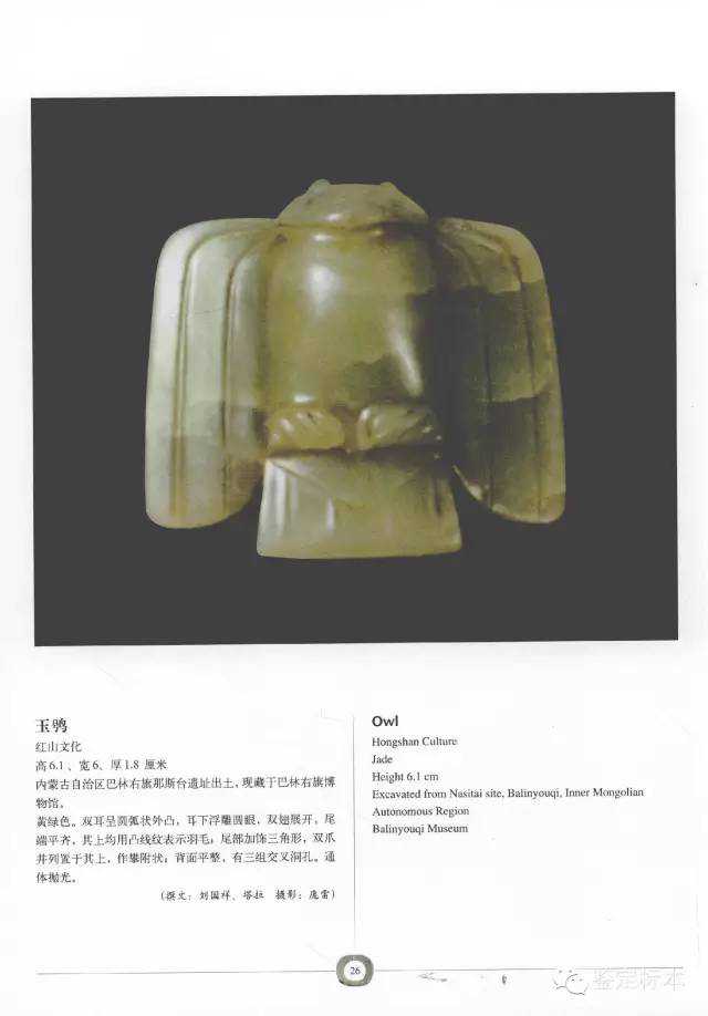 無耳為鷹,是太陽的象征,凸眼,折肩,雙爪在腹部,背部有兩個隧孔,典型紅山文化特征。