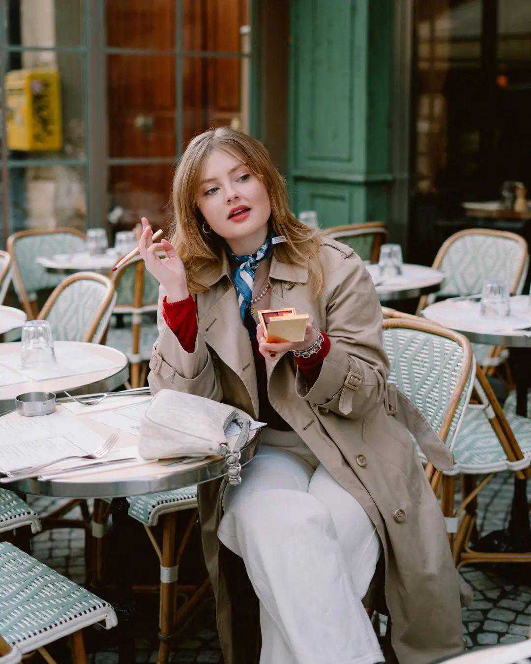 外套多选材质挺括、直线条的单品,比如西装风衣,会比软趴趴、肩线不明显的外套更显精神。