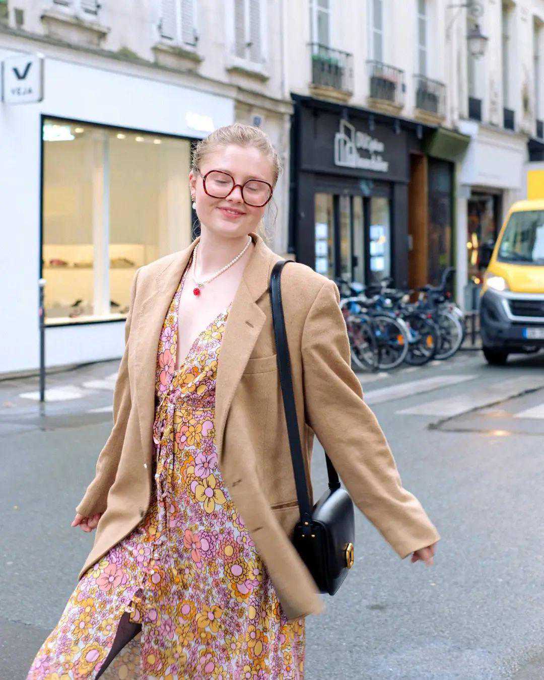 HannahTeitink来自德国,生活在巴黎,她的穿衣风格偏法式,带点复古和小性感,喜欢各种彩色单品,非常明媚。▼