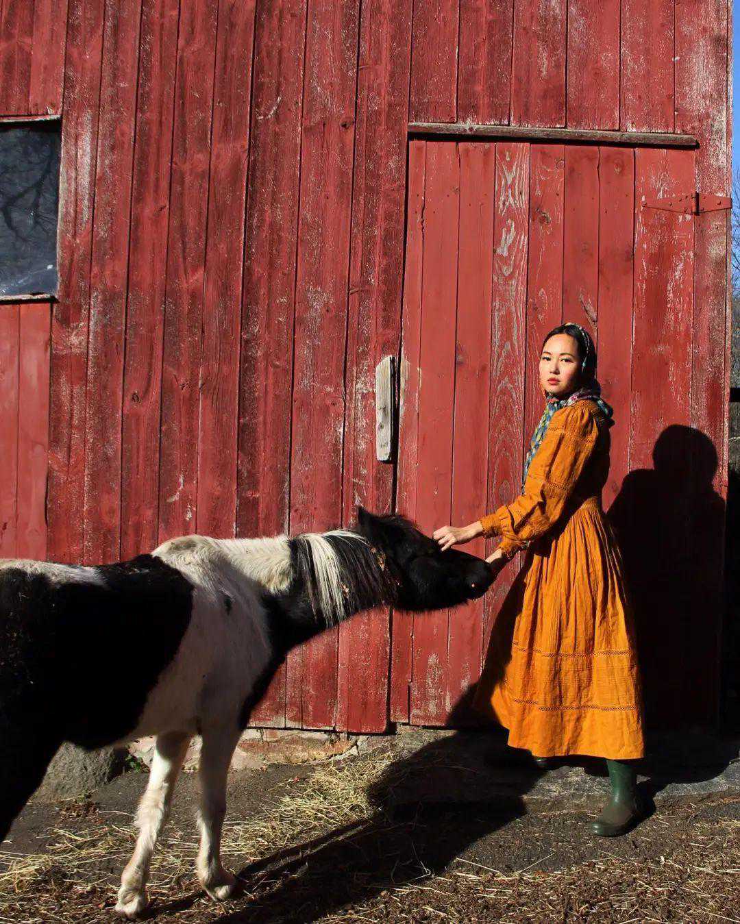 她也会穿穿其他复古风单品,风格更轻松,但是不像油画风裙子这么能把她的风格放大到极致。▼