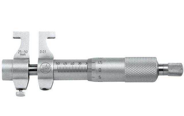 广泛应用于孔径直径,沟槽宽度的测量。其也分为两个大类:两点接杆式的内经千分尺,和三点式的三爪内径千分尺。两点式一般测量比较大的孔径,最长可以到6米。三爪主要测量小孔径,最小可以到达3.5mm的孔径。需要注意的是,三爪分为通孔和盲孔。