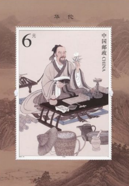 中国邮政在2020年8月19日发行《华佗》特种邮票一套两枚、小型张一枚。这套邮票由辽宁省沈阳邮电印刷厂承印,其在小型张的印制环节中,首次使用了“药臼形"的异形齿孔。不仅与画面的邮票图案相呼应,彰显中医药的千年传承,更突出了华佗的神医身份。