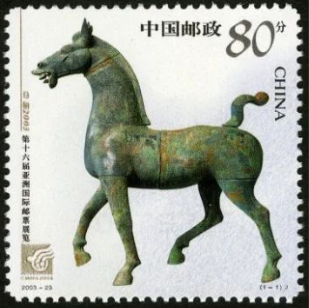 2003年为了纪念在绵阳举行的亚洲邮展,邮政发行了《中国2003第十六届亚洲国际集邮展览》邮票,同样是由王虎鸣设计、北京邮票厂承印,这次依旧邮票四角安排了“十字形"的异形齿孔。