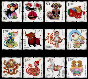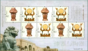 除了生肖邮票以外,仅有在2004年王虎鸣设计发行的《漆器与陶器》邮票,使用过了这款"六角星形"异形齿孔。