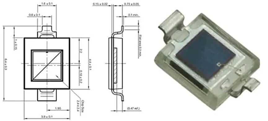 图4:002-151-001是一款平面扩散P-NSMD光电二极管,尺寸为1.6。该器件的光谱范围为800nm至1700nm。