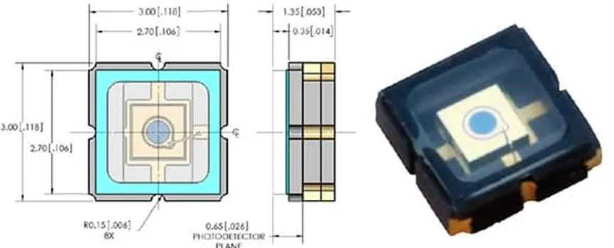 图5:VishayVBP104SR是一款具有大光学感测窗口的PIN光电二极管,用于高速光检测。