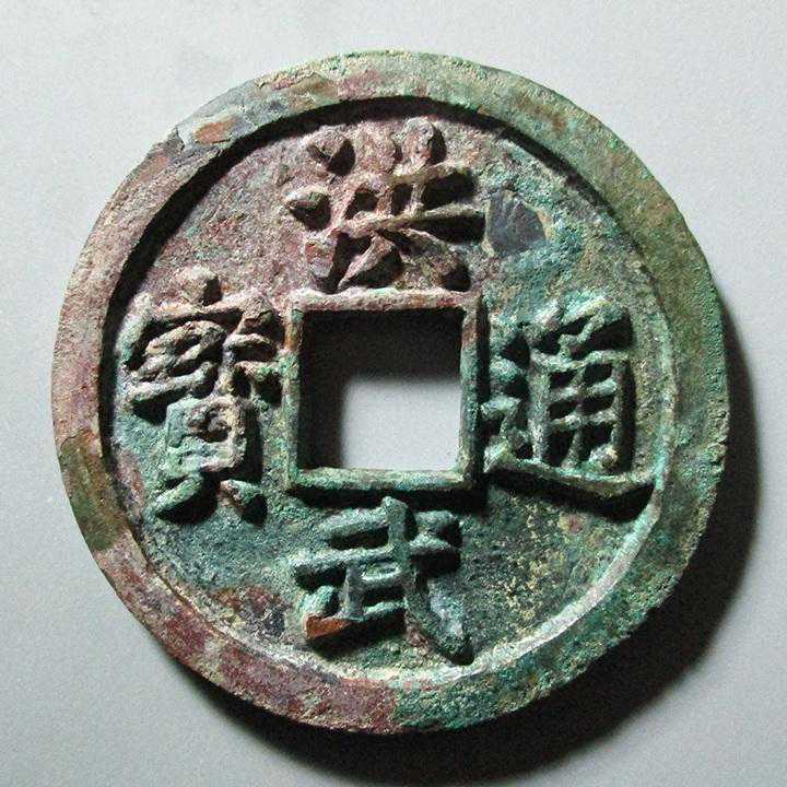 6、鄂版,此版少见,特征是双点角头通,广穿,洪武两字和其他版也区别。