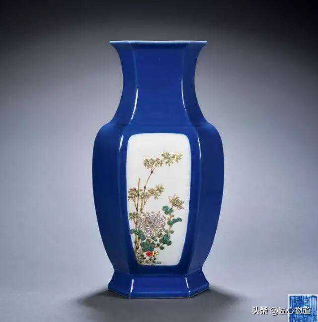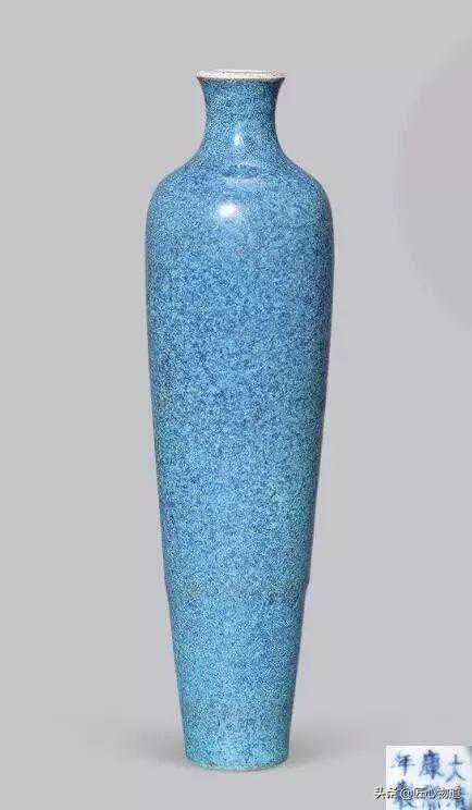 康熙早期的棒槌瓶,器形偏矮,康熙中期以后的棒槌瓶,器形趋于细长,为了与雍正时期的棒槌瓶相区别,取名硬棒槌瓶。常见的有青花、五彩、洒蓝描金、五彩开光等品种。