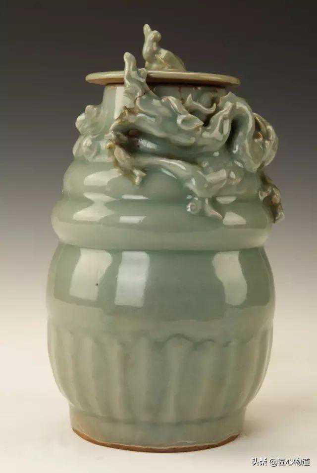 蟠龙瓶,初为明器(即冥器)。因瓶的颈、肩处堆塑一条蟠龙,故名。亦称“扳依瓶”或“招魂瓶”。长颈,有盖,盖顶钮塑成虎、凤、鹤等各种形式,圆腹、圈足。常见于宋、元明各代。